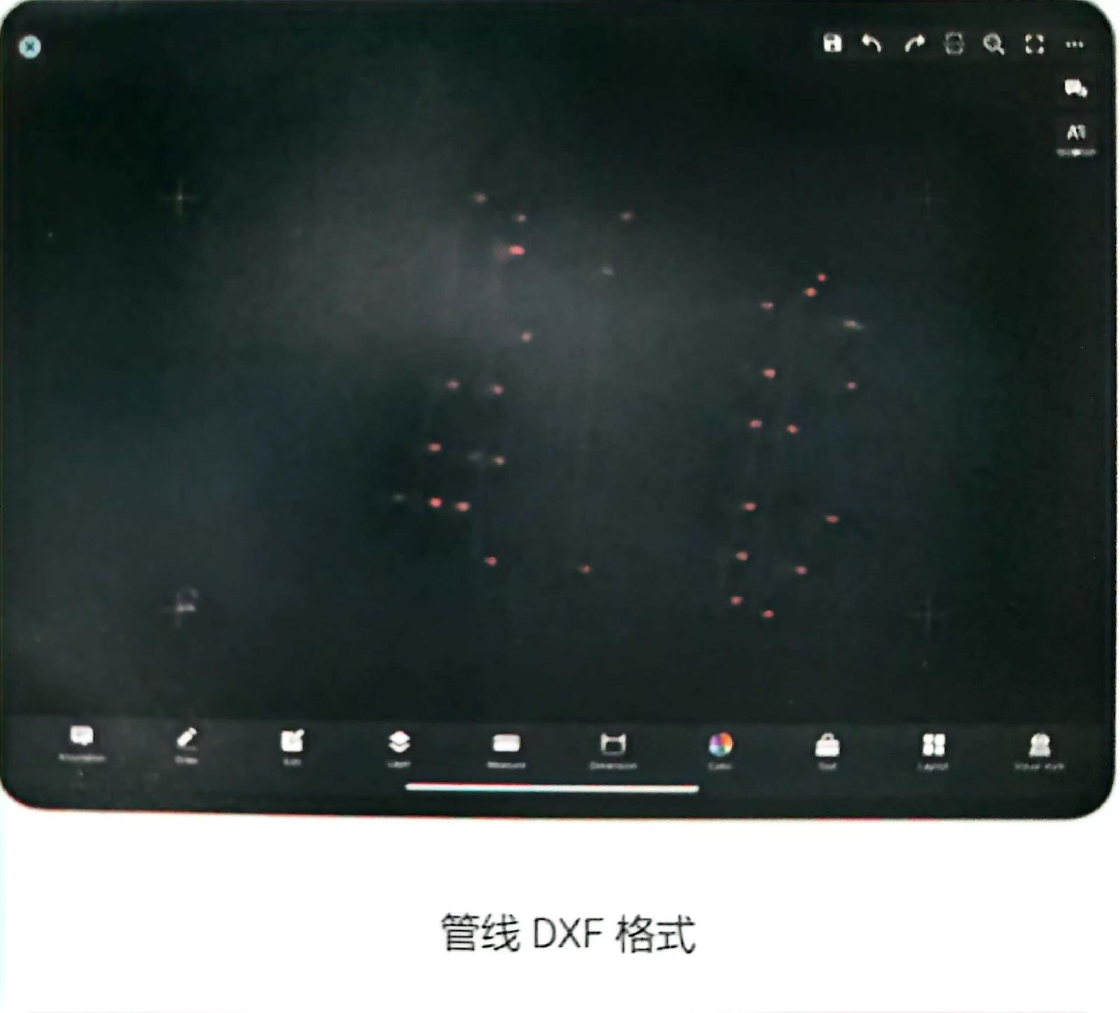 绘制完成的管线结果可以导出为包含坐标信息的DXF 文件,供制图作业单位使用。测绘人员可以直接将这些结果导入 CAD 软件,进行进一步的绘制和分析。
