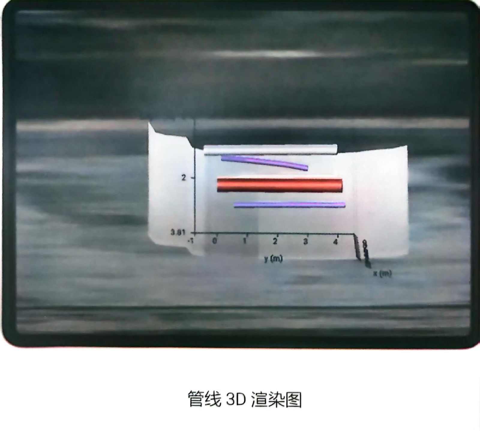使用自由路径视图中的时间切片功能,可以清楚观察到俯视成像图--约 0.6 m深、0.85 m 深、1.3m 深、1.5 m 深、2.1 m 深的五条管线信息。通过管道绘制功能,技术人员能够准确地将这五条管线在视图中绘制出来。