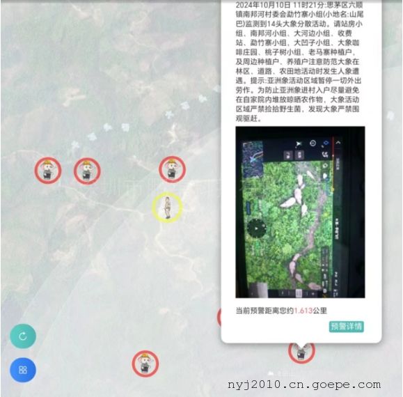 一旦发现大象在居民区附近活动,工作人员一时间通过预警平台发布相关信息,并提醒住户注意安全,及时疏散村民,保障生命安全。