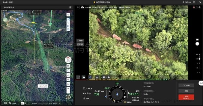 无人机 7x24 小时监测象群活动,并打点定位,实时获取无人机与象群的精准距离、象群的准确位置,保障无人机与象群的安全边界。