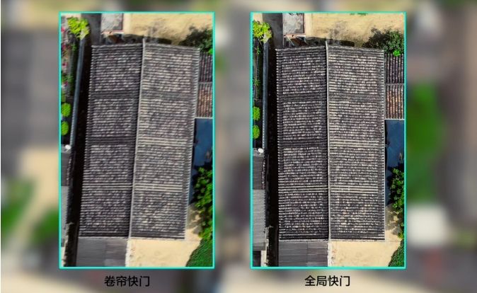 全局机械快门:核心优势! 彻底消除了高速飞行拍摄时常见的“果冻效应”,使得影像不会变形,成像锐利,特别适合高精度建模和正射影像生成。