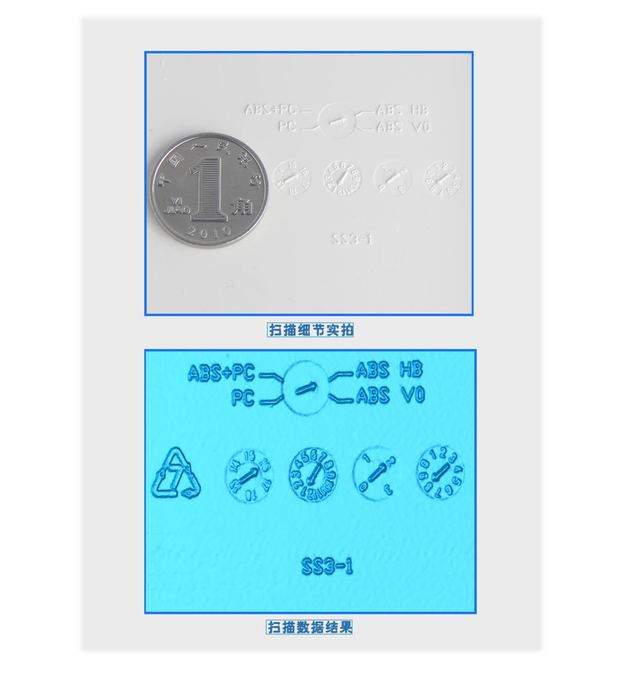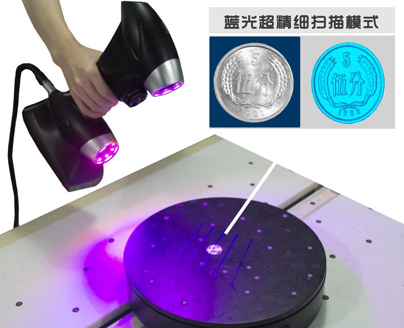 细节分辨率的五倍,大幅度提了扫描三维数据的细节度,蓝光扫描模式