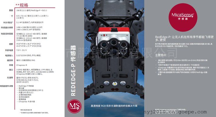 Æ·ÅÆ£ºMicasense ÐͺţºRedEdge-P ¼Ó¹¤¶¨ÖÆ£º·ñ ÍâÐγߴ磺8.9*7.0*6.7ÀåÃ× mm ÖØÁ¿£º350¿Ë ©K ÓÃ;£ºÅ©×÷ÎïÅ©ÌïѲ¼ì£¬×ÔÈ»×ÊÔ´£¬ Å©Ò -