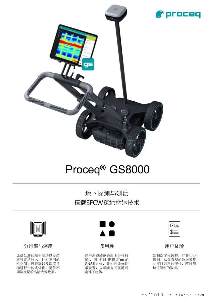 加工定制:否 品牌:Proceq 型号:GS8000 重量:23 kg 用途:地下探测与测绘,高清成像数据,地 Proceq GS8000探地雷达地下作业自由路径扫描