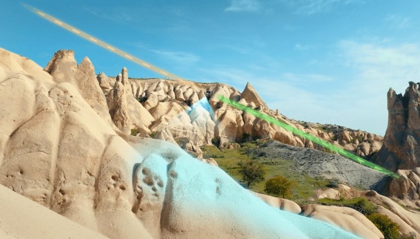 在手动飞行和航线作业时,Matrice 400 支持任意水平方向的实时仿地飞行功能,保持对地面相对高度稳定。在大范围搜救作业场景中,可保持地面目标在遥控器画面中的大小一致,减少变焦操作,提升搜救效率。在测绘作业时,可确保地面 GSD 分辨率一致,获取高精度建图数据。
